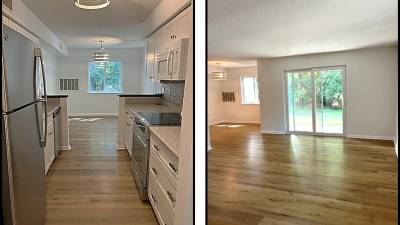 Recent renovations include new paint and blinds throughout, electrical upgrades, new lighting throughout, and new bathroom fixtures. Appliances include a range, hood fan, and new Energy Star dishwasher and refrigerator. Condo amenities include an in-ground pool and clubhouse. Heat, central air, and hot water are included in the condo fee.