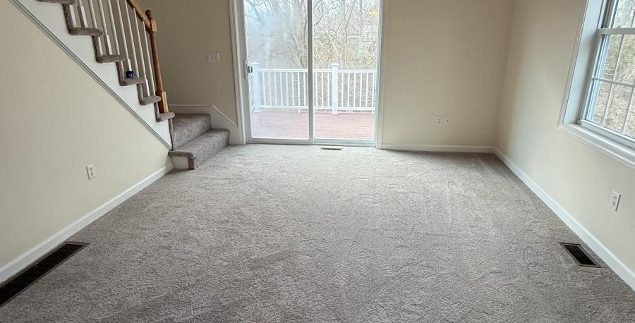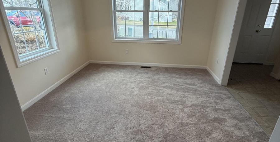 This affordable and spacious 2-bedroom, 2 bath condominium contains 1,968 square feet of living space on two levels. The first floor includes a large open concept space for living and dining, a kitchen, one bedroom, and one full bath. A second bedroom and full bathroom are on the second floor. The unit is newly painted throughout and features vinyl tile in the bathrooms, brand new carpeting throughout, a driveway and one-car garage, a back deck, and front porch. The heating system is gas with forced air and is covered in the condominium association fee. The condo is being sold ‘as-is’ with refrigerator, stove, dishwasher, garbage disposal and washer/dryer included.